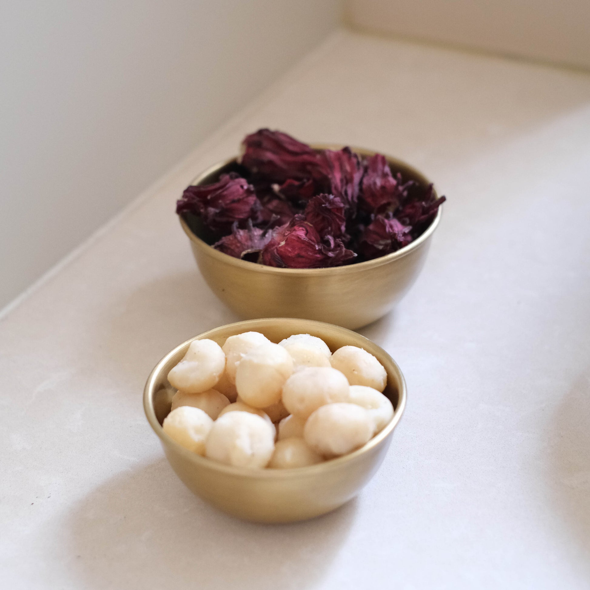 A hand-made bowl of warm, antiqued brass. Irregularities in finish will occur. Useful for desk organization, a tiny flower arrangement, jewellery catch-all, etc...Timeless and soulful. Wipe clean, polish if necessary