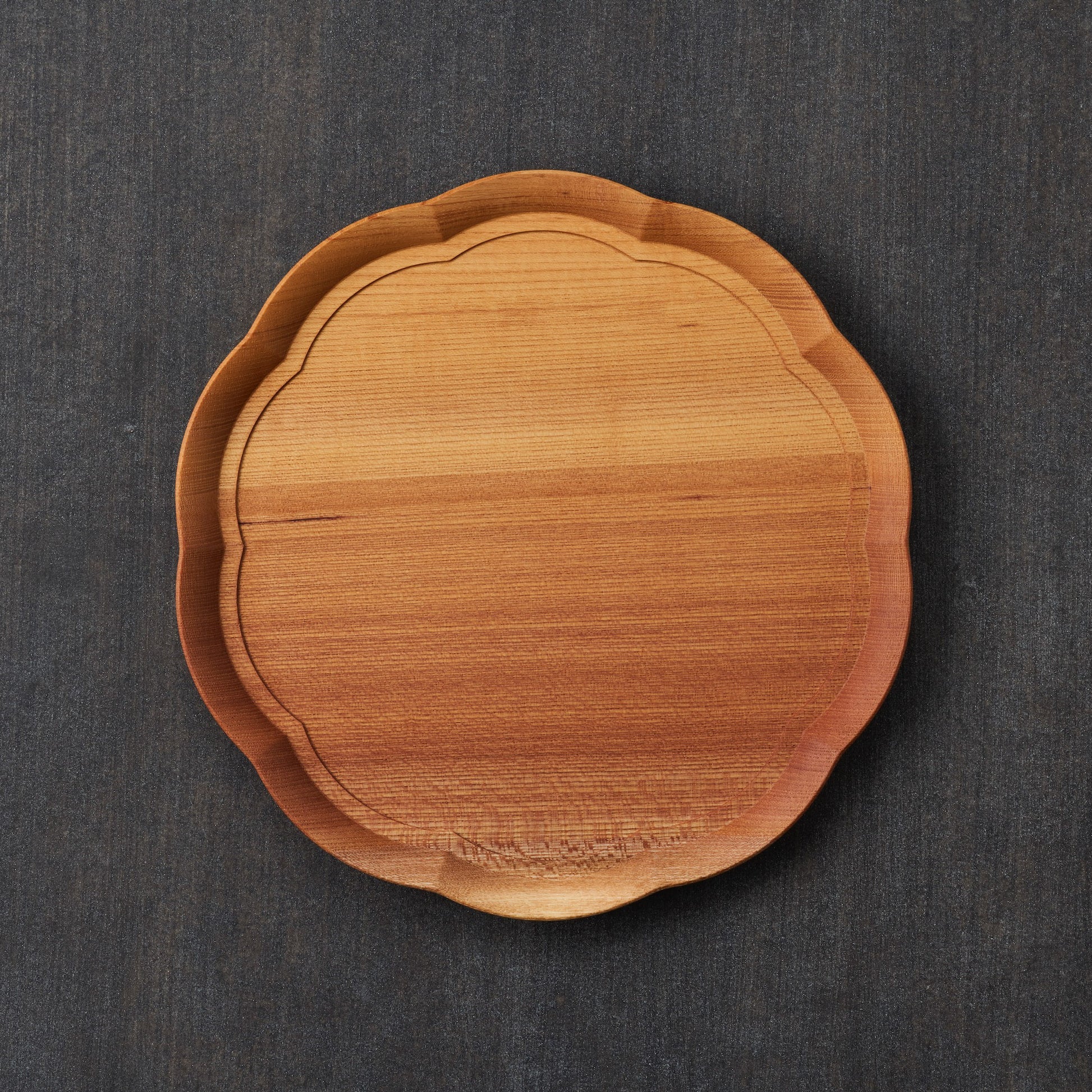 Each grain of wood holds and supports the tree itself, allowing it to grow thicker and larger while accumulating strength. It takes around 100 years for a tree to reach a size suitable for making dishes or trays.