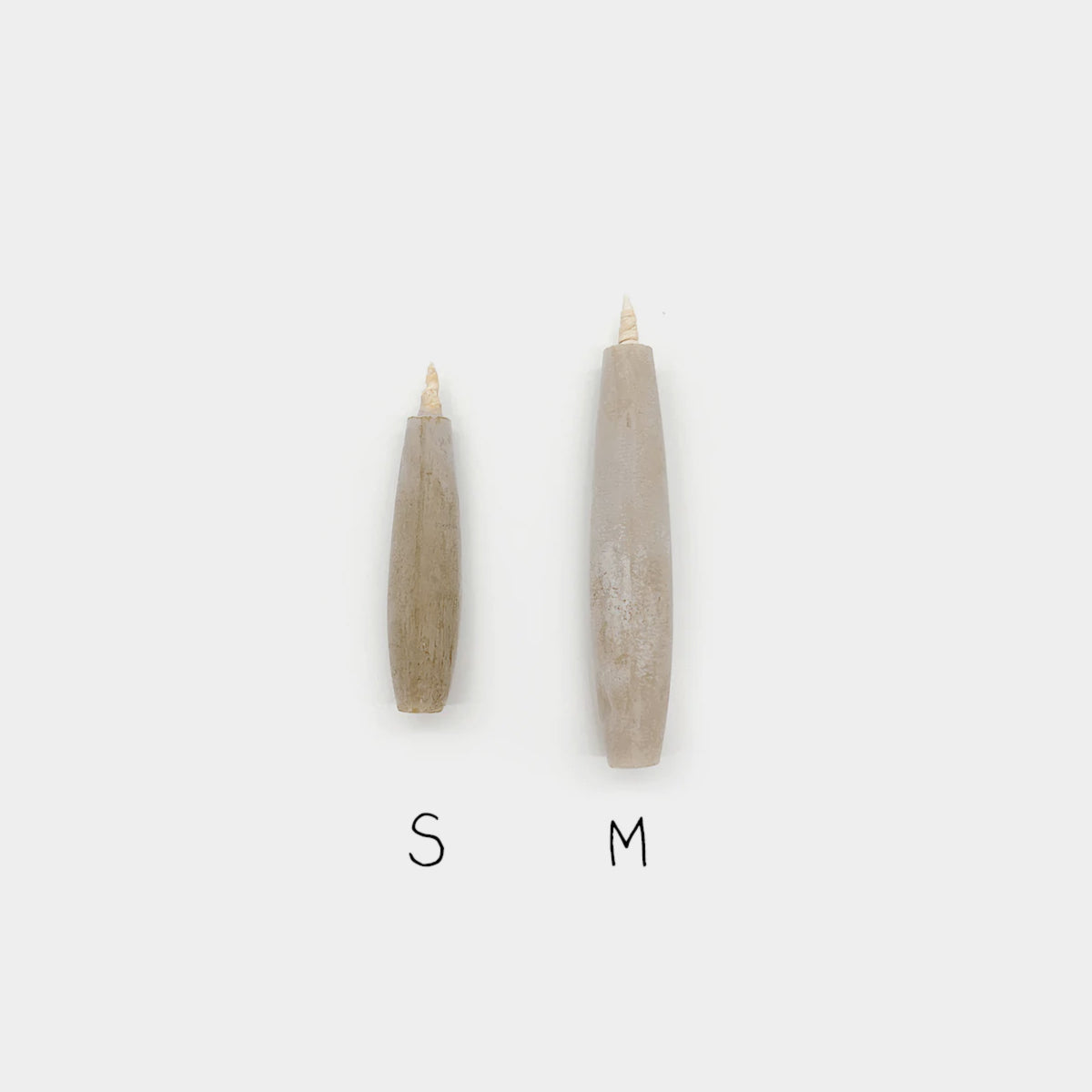 These candles have a tall intense flame, burning brighter than most modern paraffin candles – due to the wicks composition of dried reed wrapped around a washi paper cylinder. They also let off less soot and smoke, due to their plant-based materials.Due to each piece being made from natural Haze wax, candles come in an array of soft colours, such as, off white, muted grey and muted ochre.